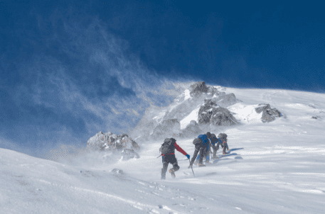 「霧と大雨の中で一緒に登山したのは生死を共にした仲間だ」