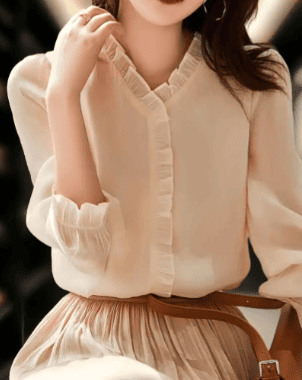 例:木耳边衬衫做内搭也很优秀