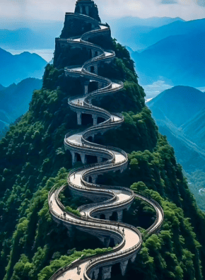 「ジグザグした山道で運転して頂上へ、美しすぎる」